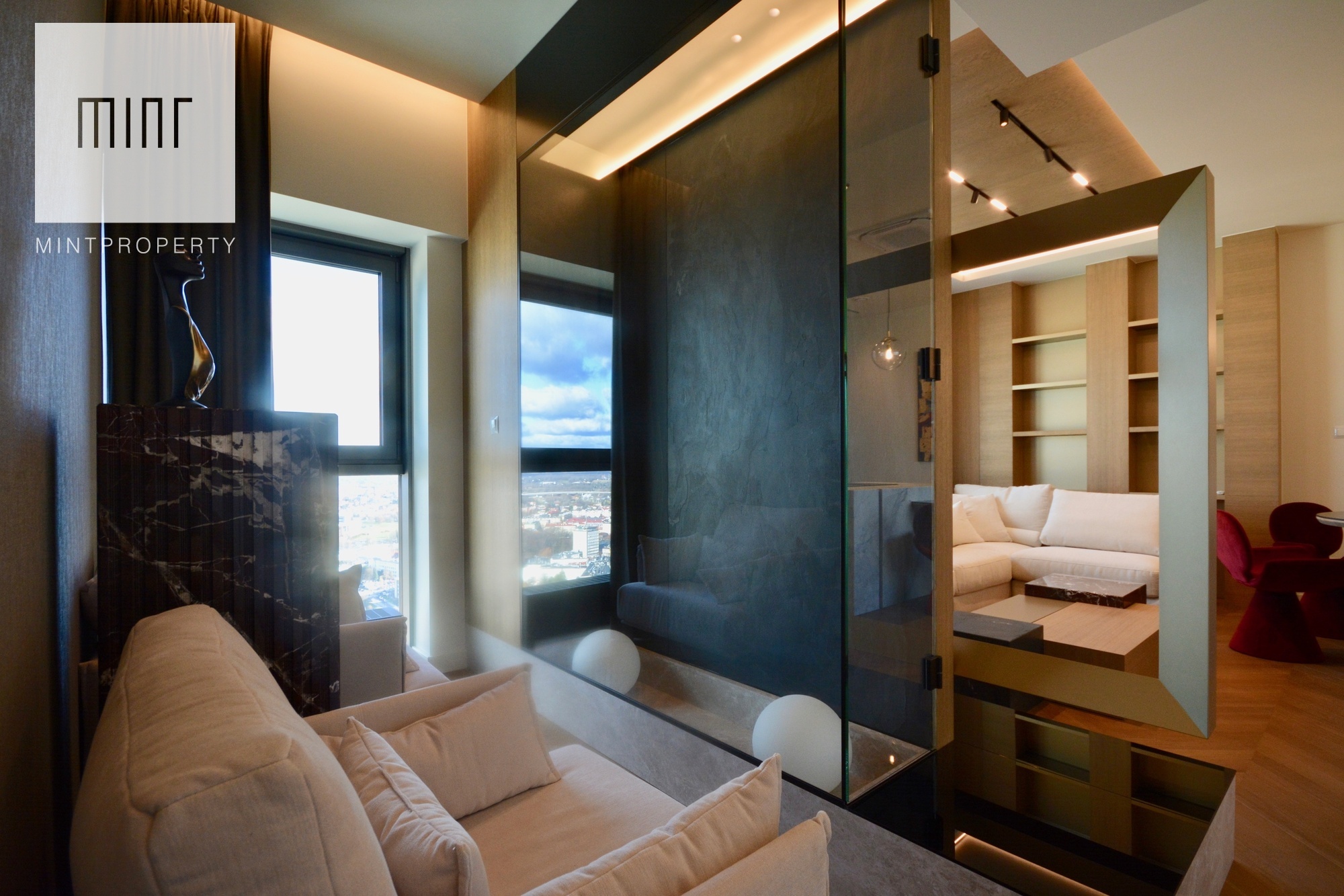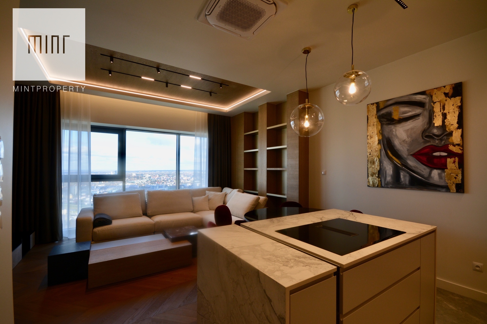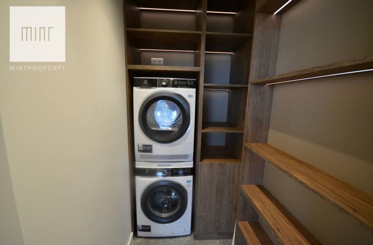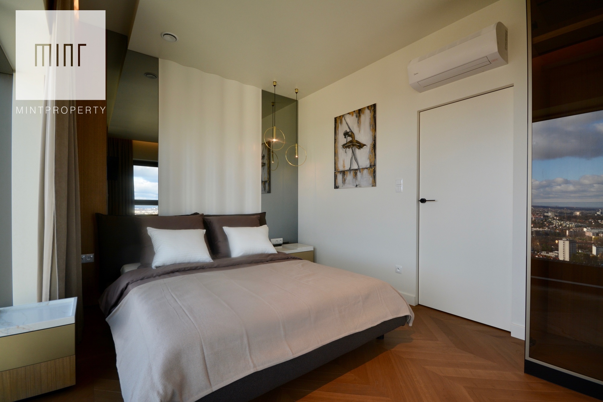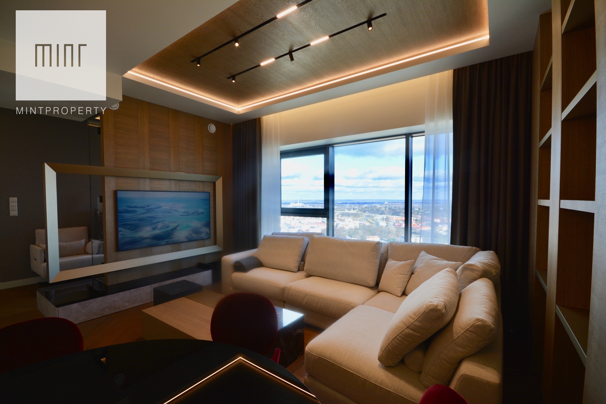 Apartament o powierzchni 88,44m2 m2 składa się z salonu połączonego z aneksem kuchennym, dwóch oddzielnych sypialni, strefy wypoczynkowej, pomieszczenia gospodarczego, w którym mamy do dyspozycji pralkę oraz suszarkę, łazienki, wiatrołapu oraz korytarza. Do mieszkania przynależy komórka lokatorska o powierzchni 3,28m2 oraz miejsce postojowe w garażu podziemnym. Nieruchomość usytuowana jest na 30 piętrze z przepięknym widokiem na panoramę miasta. Apartament znajduje się w bardzo prestiżowym, i zarazem najwyższym budynku mieszkalnym w Polsce!