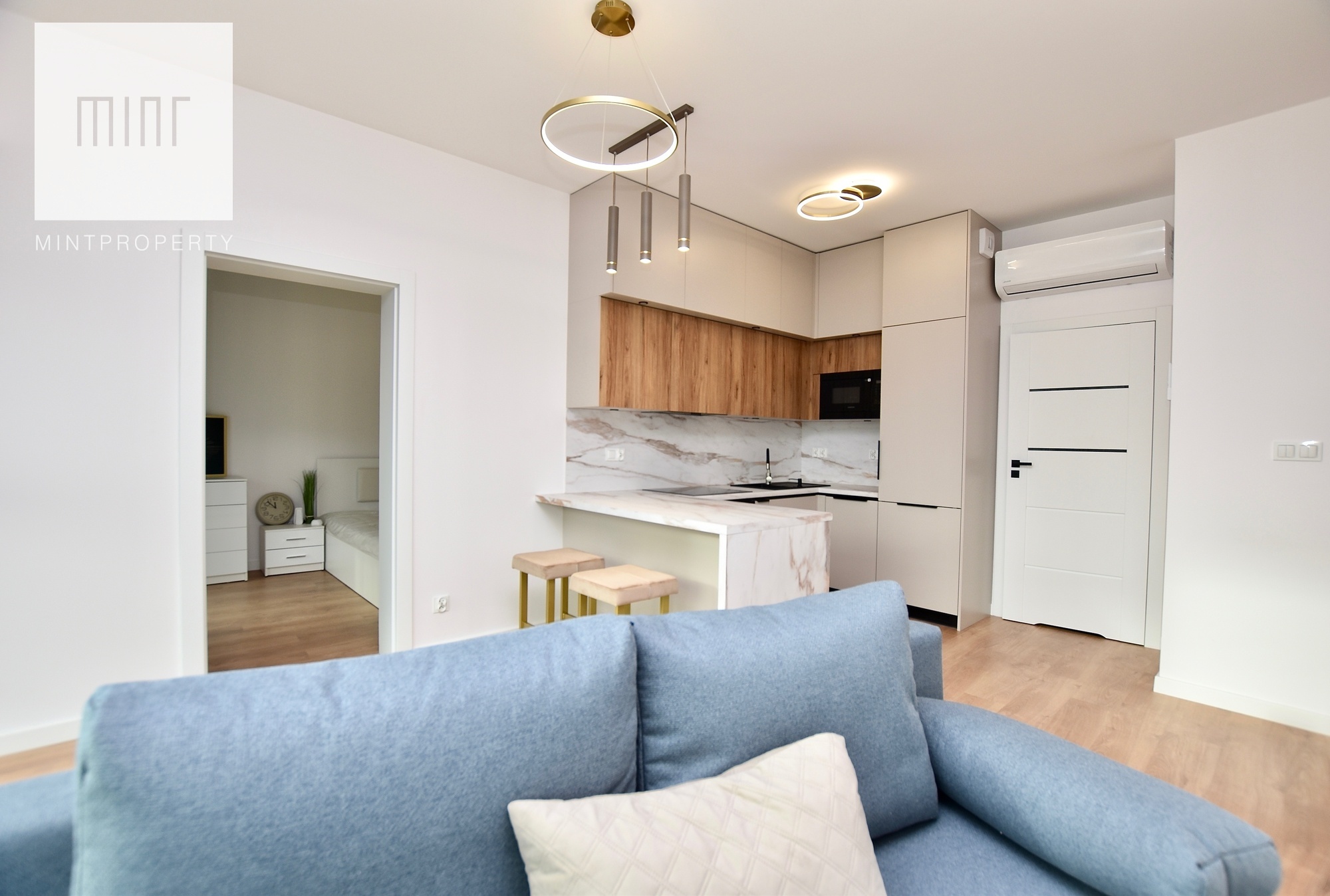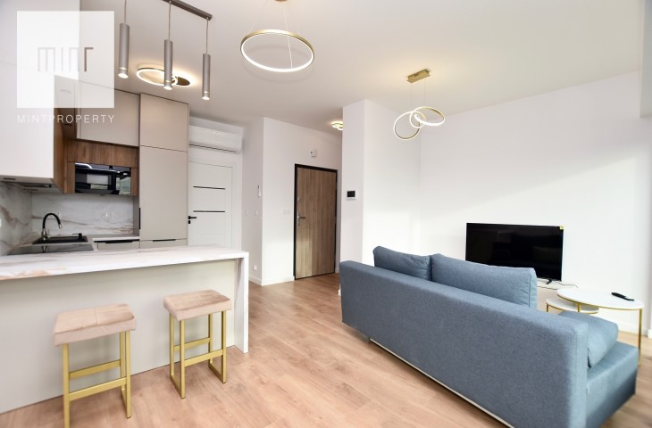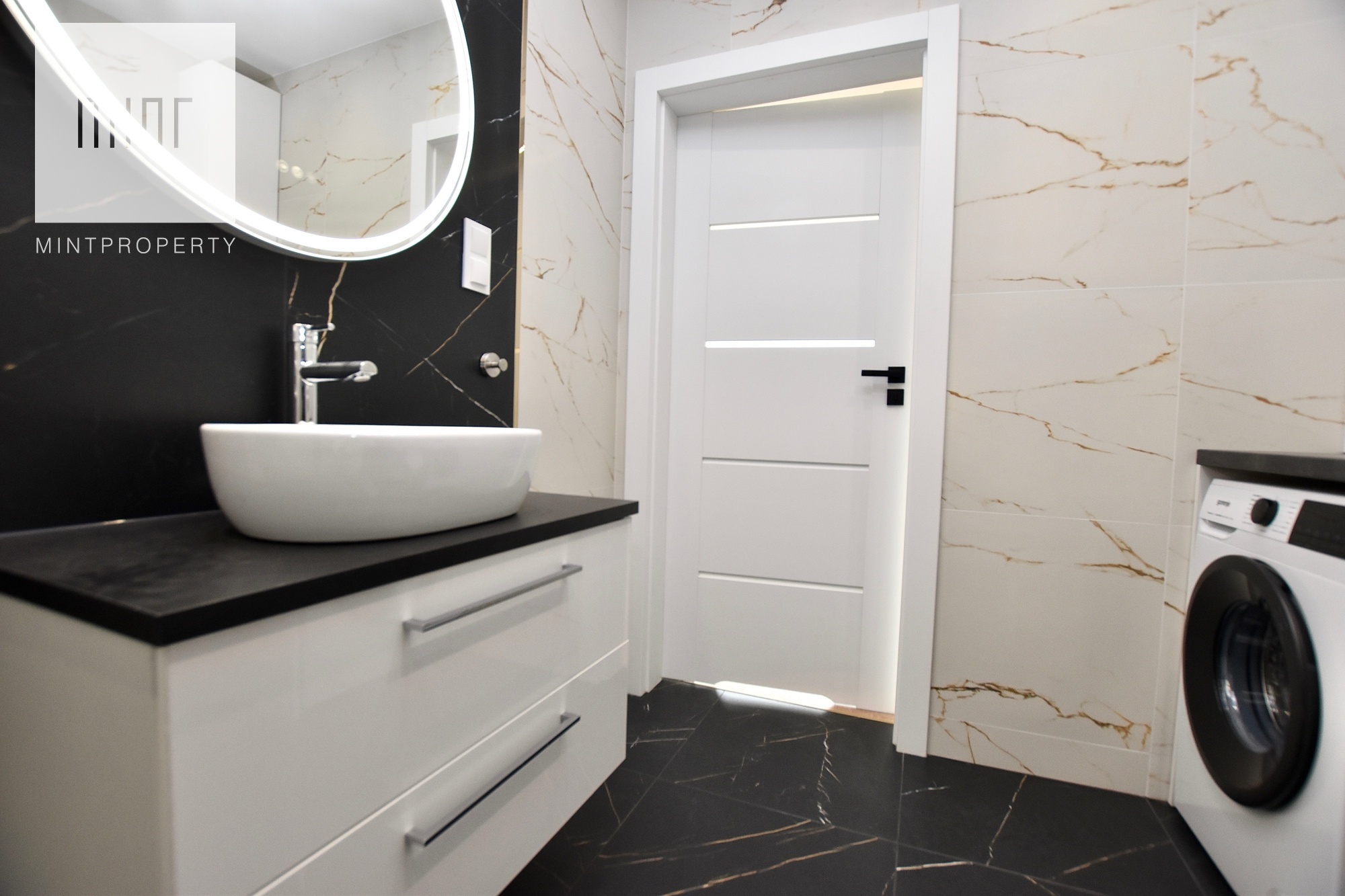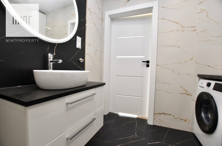 Mieszkanie w całości wyposażone, gotowe do zamieszkania. Nieruchomość wykończona z wysokiej jakości materiałów, meble na wymiar, bardzo duża szafa w sypialni.
