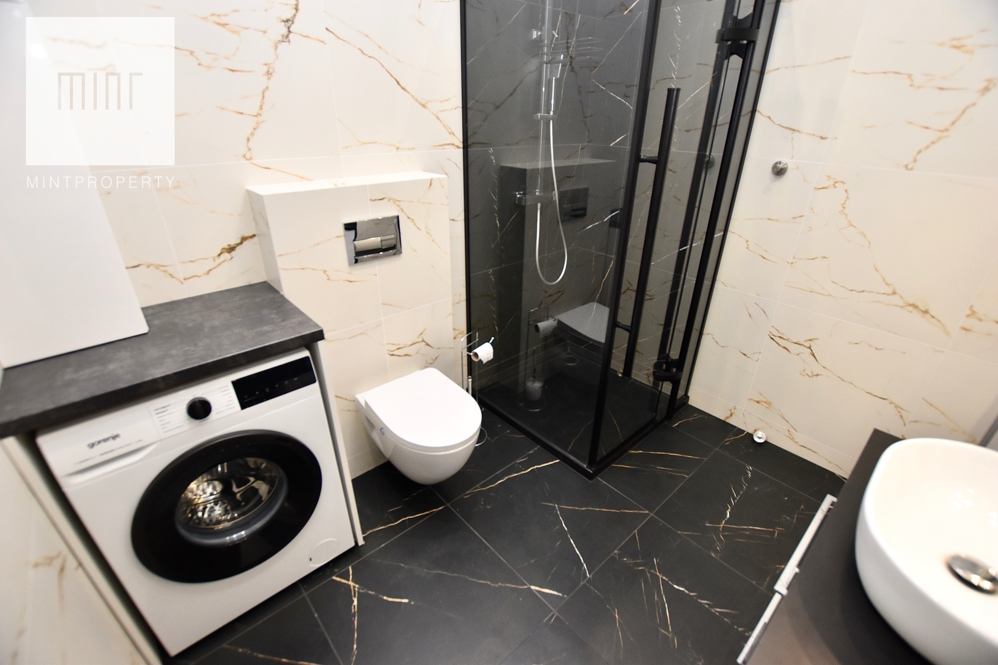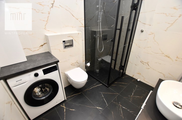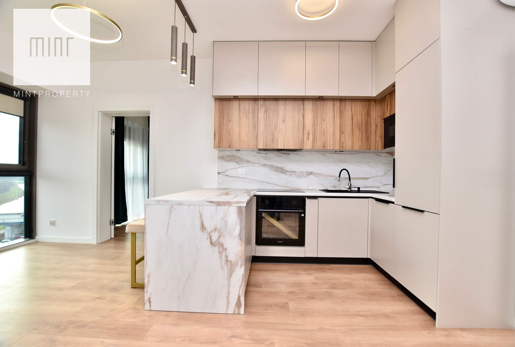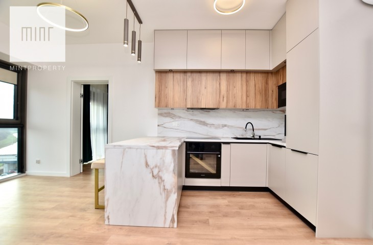 Mieszkanie w całości wyposażone, gotowe do zamieszkania. Nieruchomość wykończona z wysokiej jakości materiałów, meble na wymiar, bardzo duża szafa w sypialni.