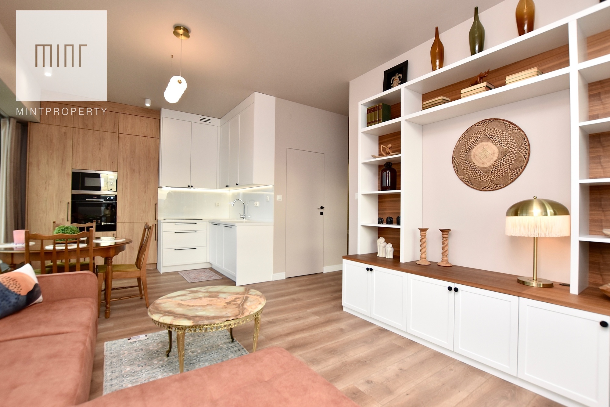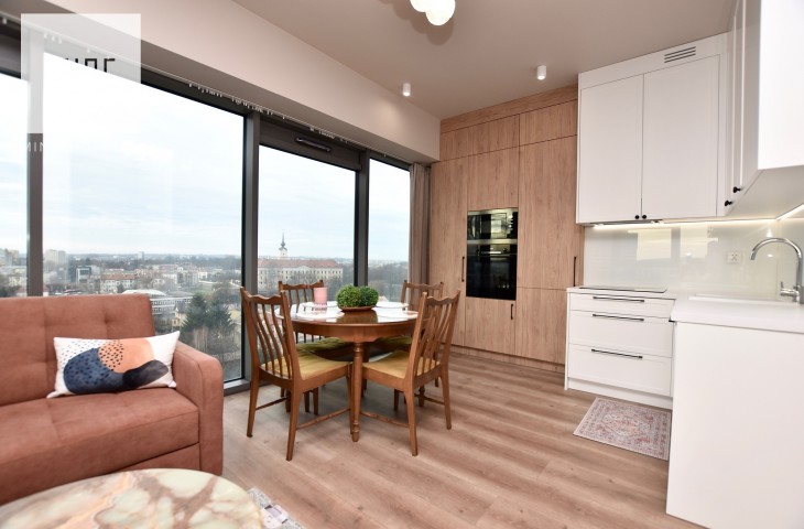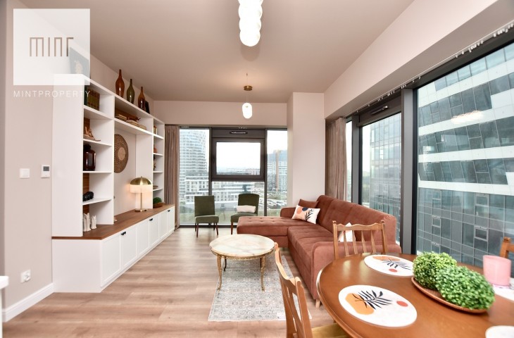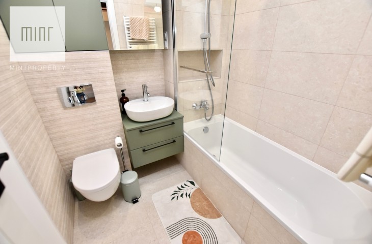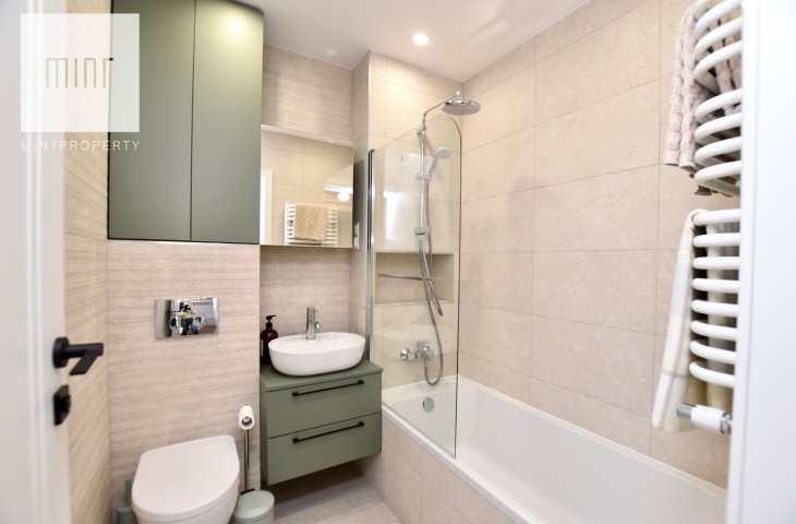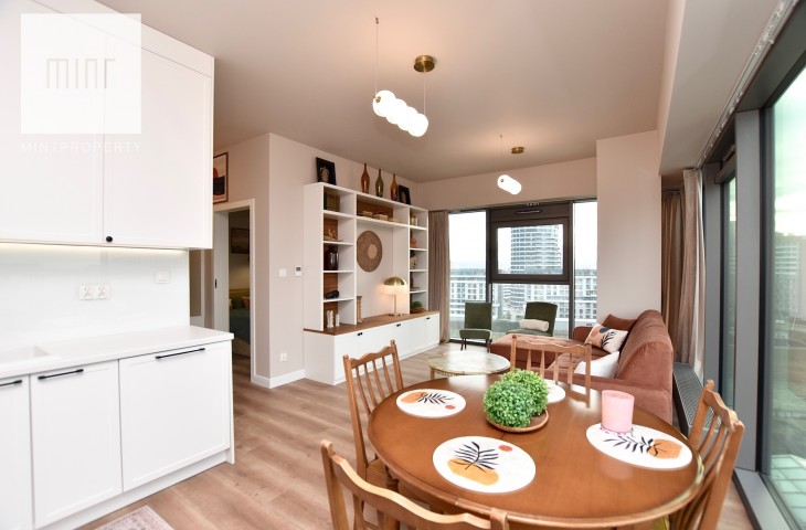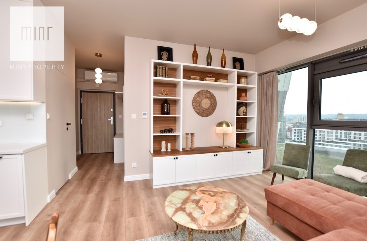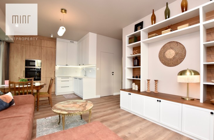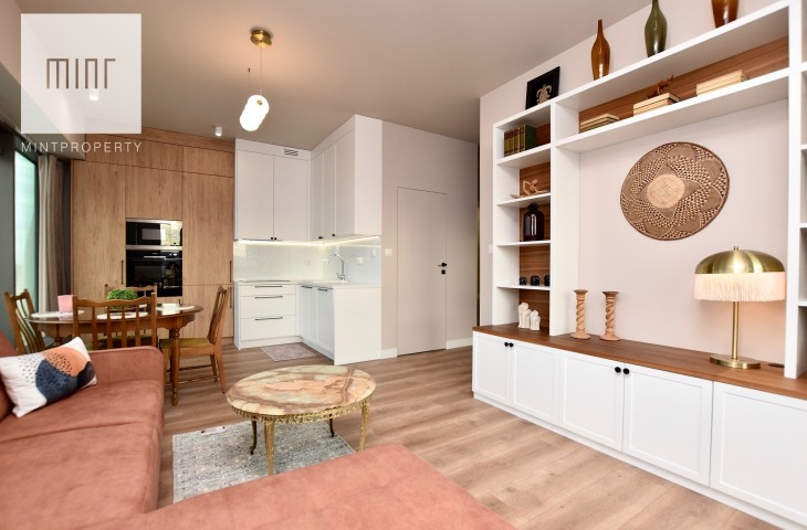 Mieszkanie w całości wyposażone, gotowe do zamieszkania. Nieruchomość wykończona z wysokiej jakości materiałów oraz sprzętów AGD, meble na wymiar, pralko-suszarka, odkurzacz itp.