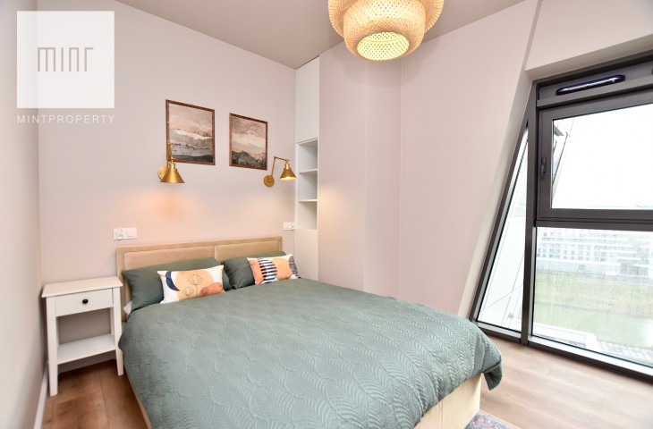 Mieszkanie o powierzchni około 43 m2 usytuowane jest na 7 piętrze i składa się z pokoju dziennego połączonego z aneksem kuchennym, sypialni, garderoby, łazienki oraz przedpokoju. Do mieszkania przynależy komórka lokatorska oraz miejsce postojowe w garażu podziemnym.