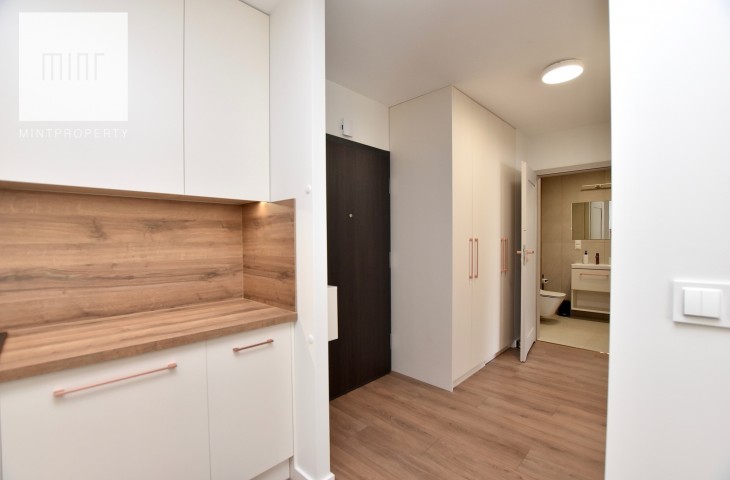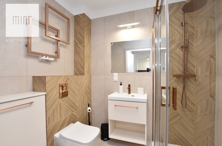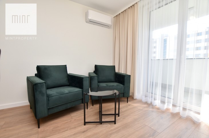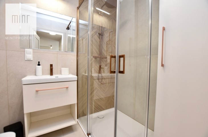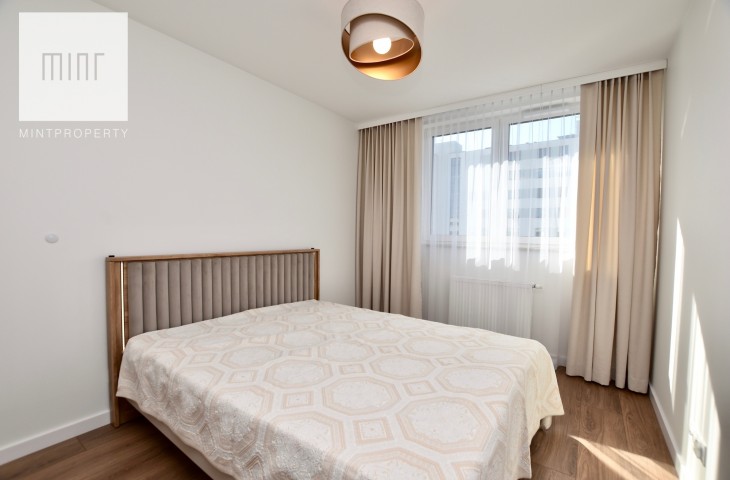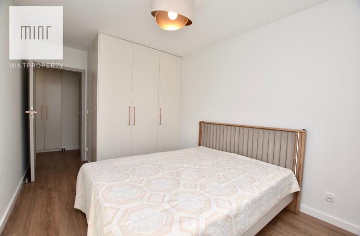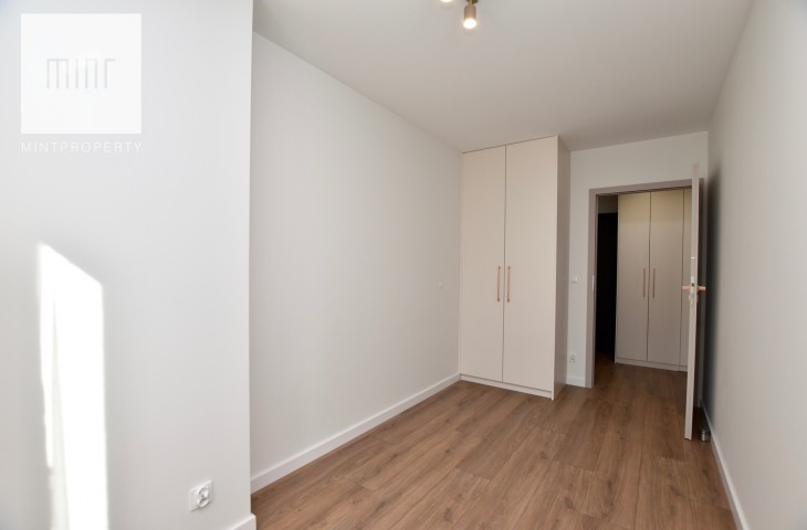 Mieszkanie wyposażone, gotowe do zamieszkania. Nieruchomość wykończona z wysokiej jakości materiałów. W sypialni, pokoju oraz przedpokoju znajdują się pojemne szafy na wymiar. Mieszkanie wyposażone we wszystkie niezbędne sprzęty AGD w tym pralka, suszarka elektryczna, zmywarka itp. Jeden pokój pozostaje do aranżacji przez przyszłego najemcę może pełnić rolę gabinetu lub dodatkowej sypialni dla gości. Budynek oddany do użytku w 2025 roku. Mieszkanie klimatyzowane.
